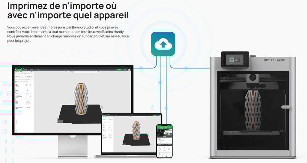À l'époque du STL, vous deviez gérer les fichiers de modèle, les paramètres d'impression, les instructions de montage, les informations de licence et les images de modèle à différents endroits et avec différents logiciels. Grâce à la prise en charge native du format 3MF par défaut, le X1 vous épargne tous ces problèmes et vous pouvez désormais gérer l'ensemble de votre projet sur un seul et même nuage.