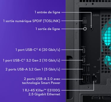 Les 32 Go de DDR5 et le SSD NVMe 1 To assurent une réactivité quotidienne irréprochable, même en multitâche intensif.