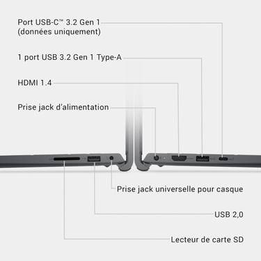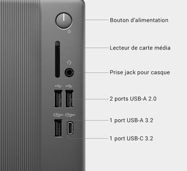 Connectique ultra-complète : HDMI, DisplayPort et USB‑C pour brancher jusqu’à 3 écrans 4K.
