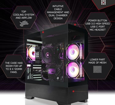 Ce PC propose une configuration très équilibrée pour un usage exigeant : le Ryzen 9 9900X et la RTX 5070 Ti offrent un excellent niveau de performances pour le jeu en QHD/4K, le streaming et la création de contenu.