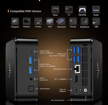 Mini PC ultra‑compact mais extrêmement performant pour le travail, le multimédia et la création.