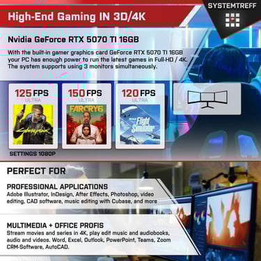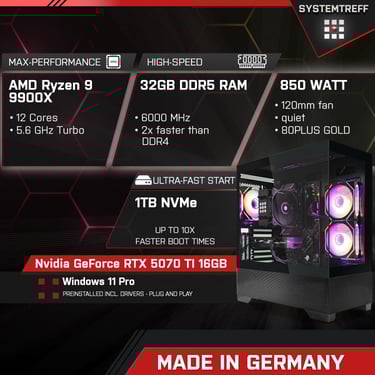 SYSTEMTREFF PC Gamer High-End Ryzen 9 9900X | RTX 5070 Ti 16 Go | 32 Go DDR5 | SSD 1 To NVMe | Windows 11 Pro