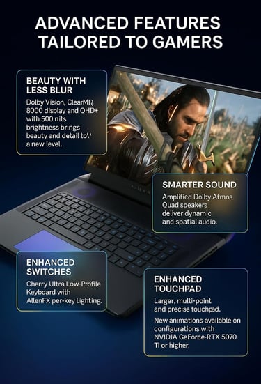 Marque orientée gaming : écosystème Alienware (logiciels, profils, éclairage) apprécié des joueurs, plus premium qu’un PC “no name” équivalent sur le papier.