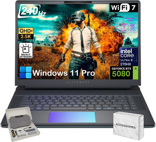 PC gamer Alienware puissant avec Core Ultra 7, RTX 5070 et 32 Go de DDR5, idéal pour le jeu en QHD/4K, le streaming et la création sous Windows 11.
